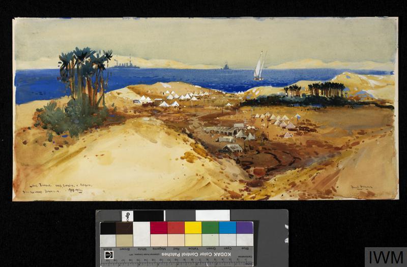 Lake Timsah : "HMS Euryalus" and the French Cruiser "Requin" from the Camp, Ismalia, May 1916
