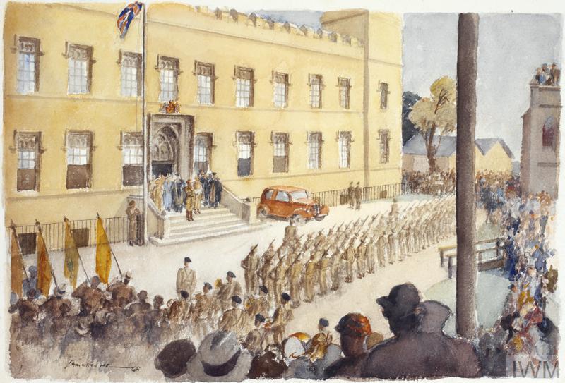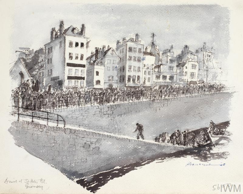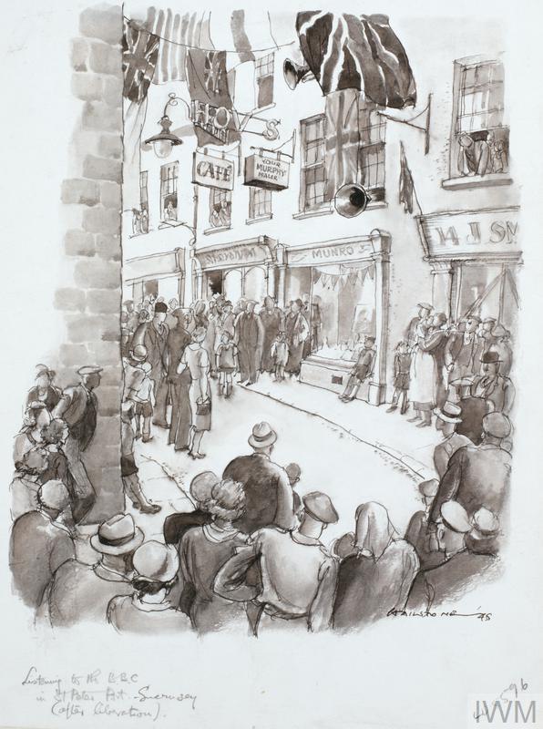 Listening to the BBC in St Peter Port, Guernsey, after the Liberation in May 1945