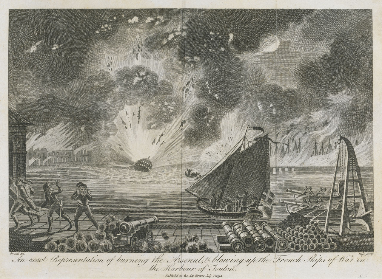 An exact Representation of burning the Arsenal & blowing-up the French Ships of War in the Harbour of Toulon. Print