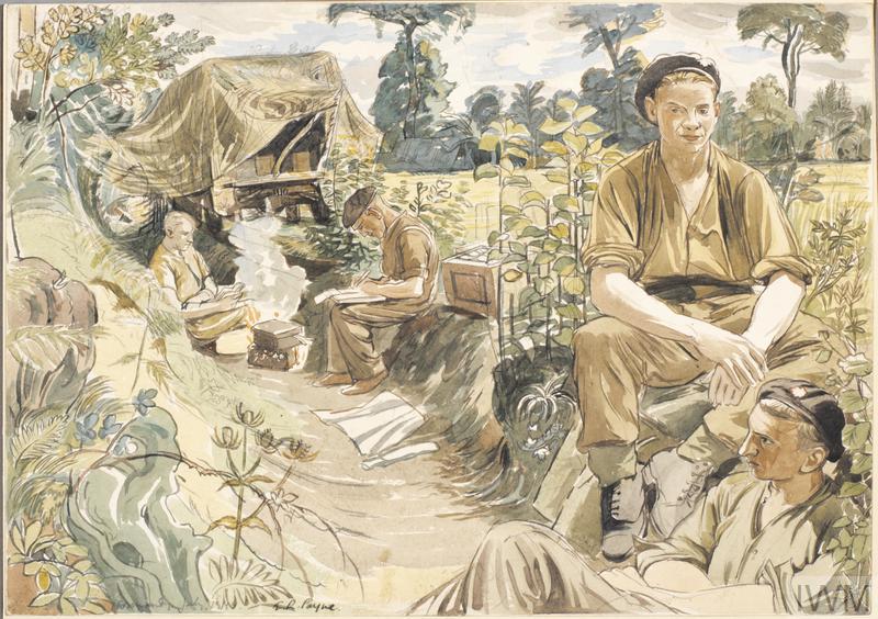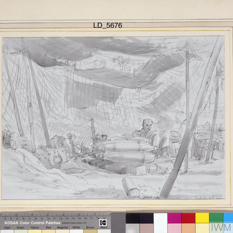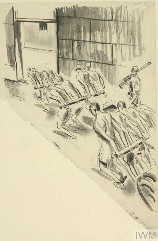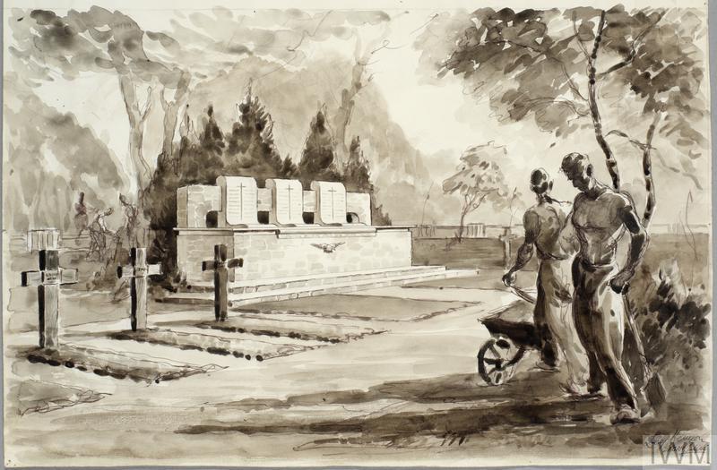 An Impression of the Commemorative Vault built at Sagan showing Officers Working in the Grounds of Stalag Luft III