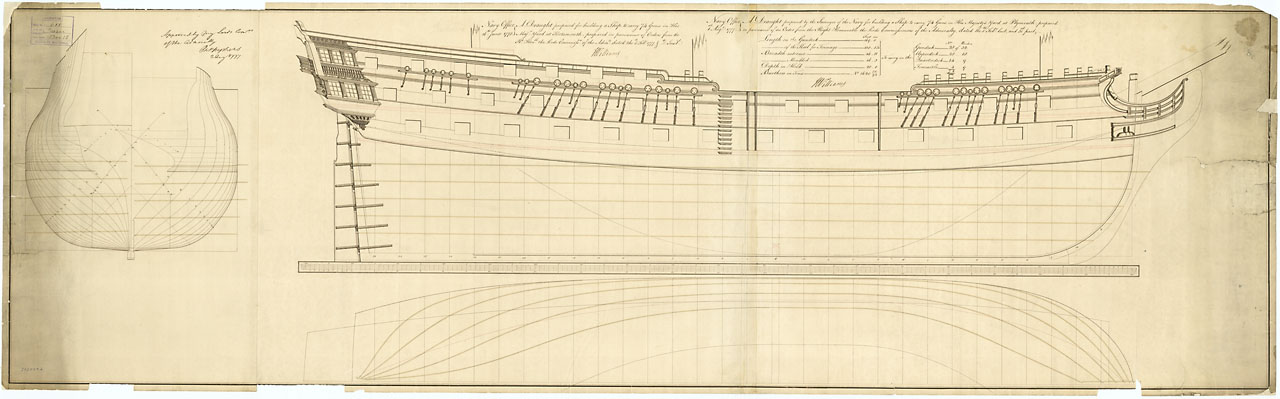 Signed by Thomas Slade [Surveyor of the Navy, 1755-1771] and William Bately [Surveyo