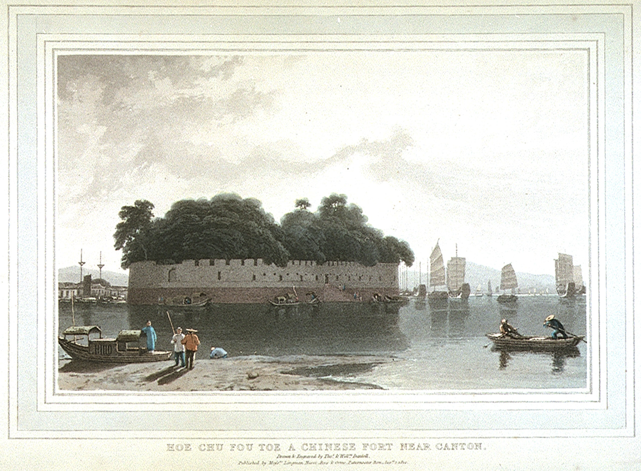 Hoe Chu Fou Toe a Chinese Fort near Canton. Hoe Chu Fou Toe (Dutch Folly Fort) was one of the most popular motifs for Western artists visiting Canton from 1780. It was an oval fort built by Dutchmen on a sand bar in the Canton River. It lay about 800 metr