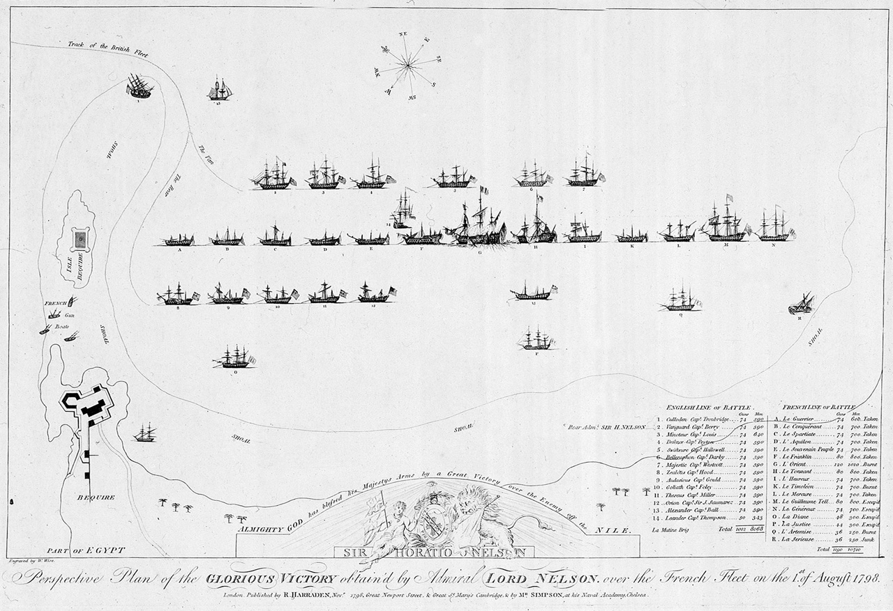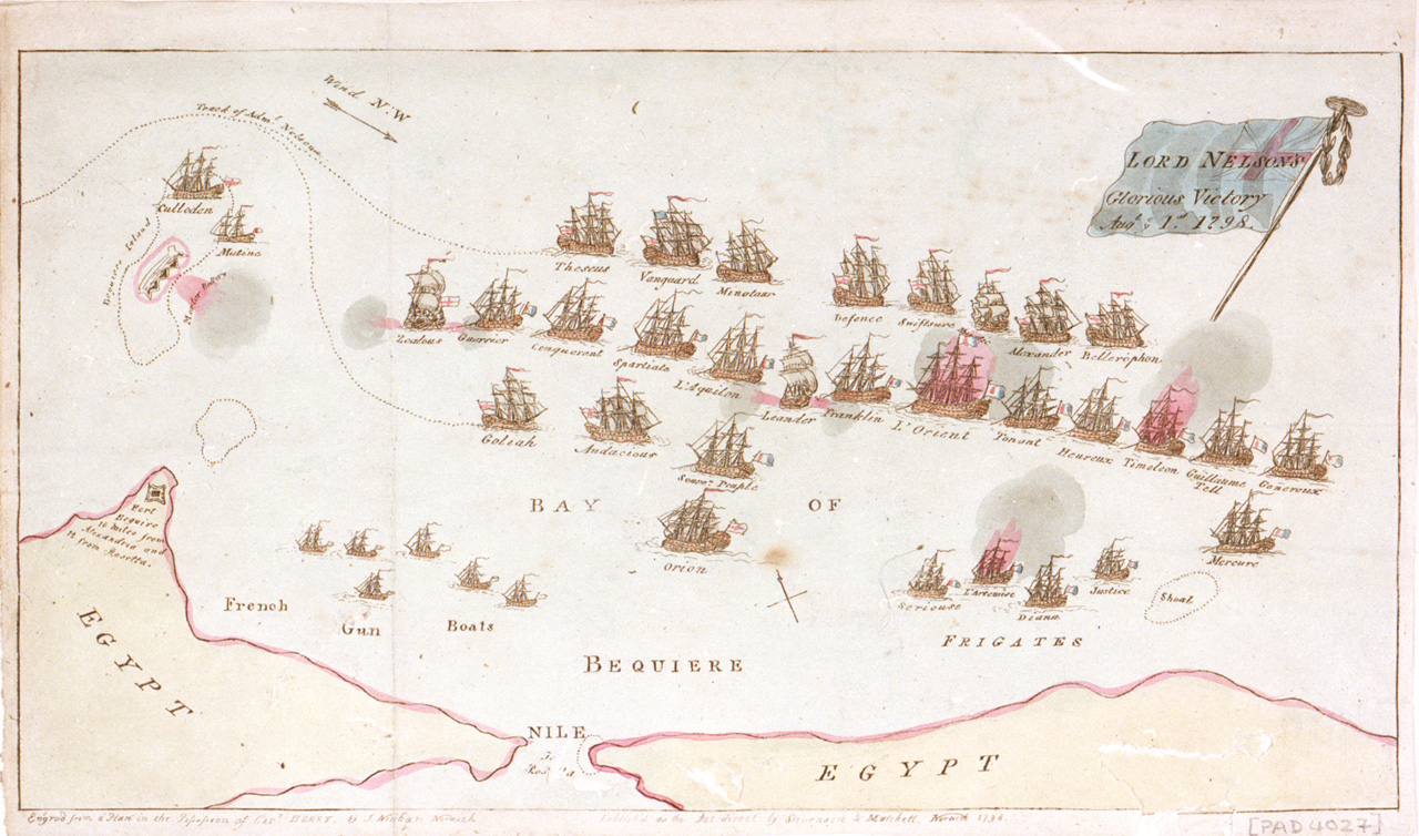 The Battle of the Nile, 1 August 1798: End of the Action. On 19 May 1798, Napoleon sailed from Toulon on his hazardous adventure to Egypt, capturing Malta on the way. On 1 August, Rear-Admiral Sir Horatio Nelson sighted Alexandria, with its harbour full o