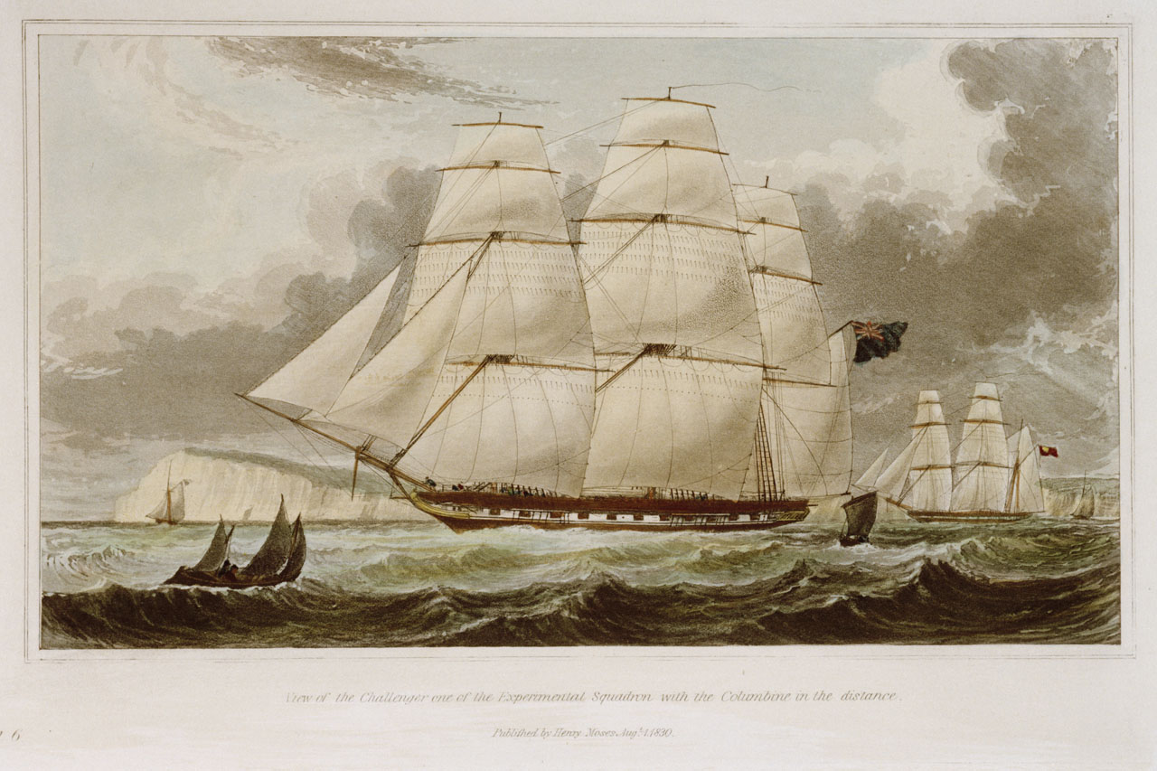 Six views of the Columbine and The Experimental Squadron. Drawn and Engraved by Henry Moses. Plate No.6. Hand-coloured.