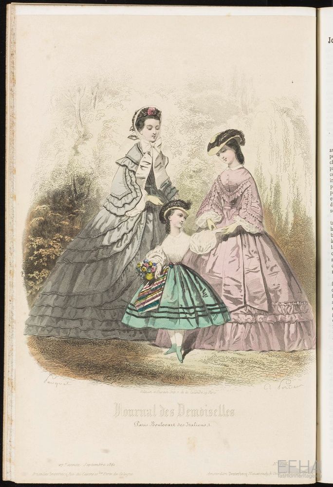 Modeprent (in kleur) uit 'Journal des demoiselles' 1861-08-01
