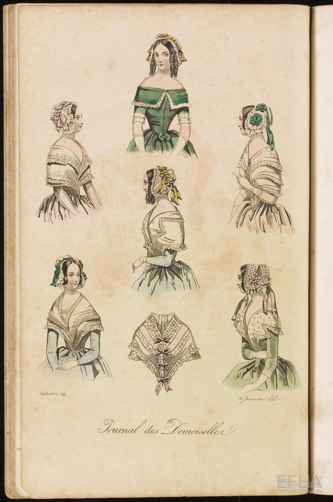 Modeprent (in kleur) uit 'Journal des demoiselles' 1843-08-01