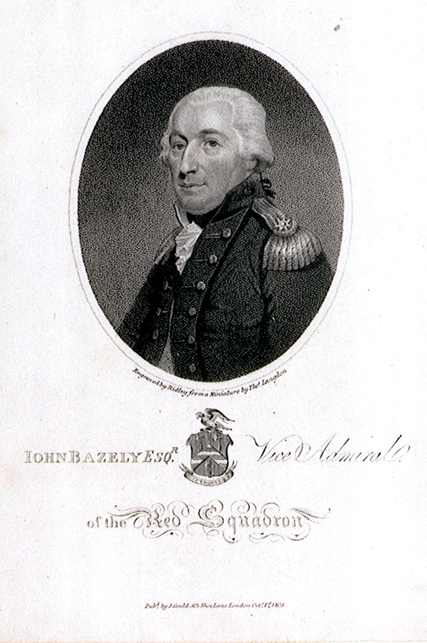 Iohn Bazely Esqr Vice Admiral of the Red Squadron. Engraved by Ridley from a Miniature by Thos Langdon. Print