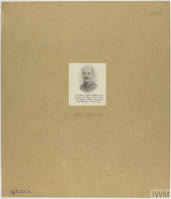 Second Lieutenant Arthur William Armitage. Unit: "D" Company, 8th Battalion, King's Own Yorkshire Light Infantry. Death: 1 October 1916, Somme, Western Front.