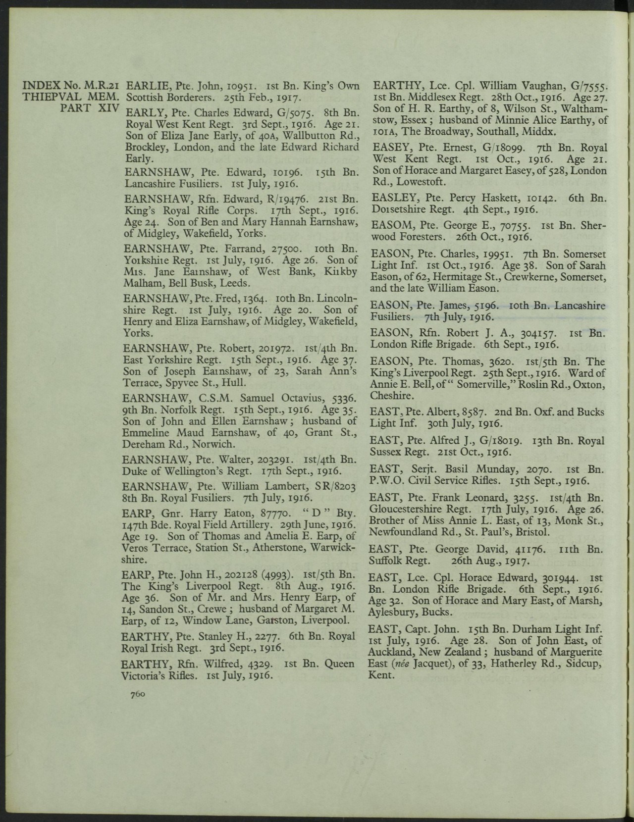 Rfmn Willy was reported wounded and missing on 1 October 1916 during the Battle of the Somme. He is commemorated on theThiepval Memorial.