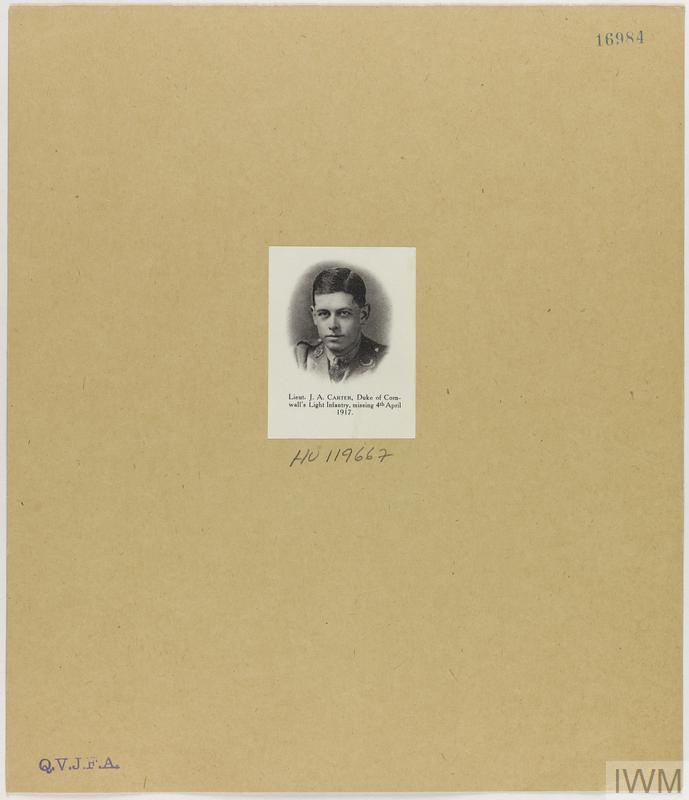Lieutenant John Alan Carter. Unit: 6th Battalion, Duke of Cornwall's Light Infantry. Death: 02 April 1917 Missing in action