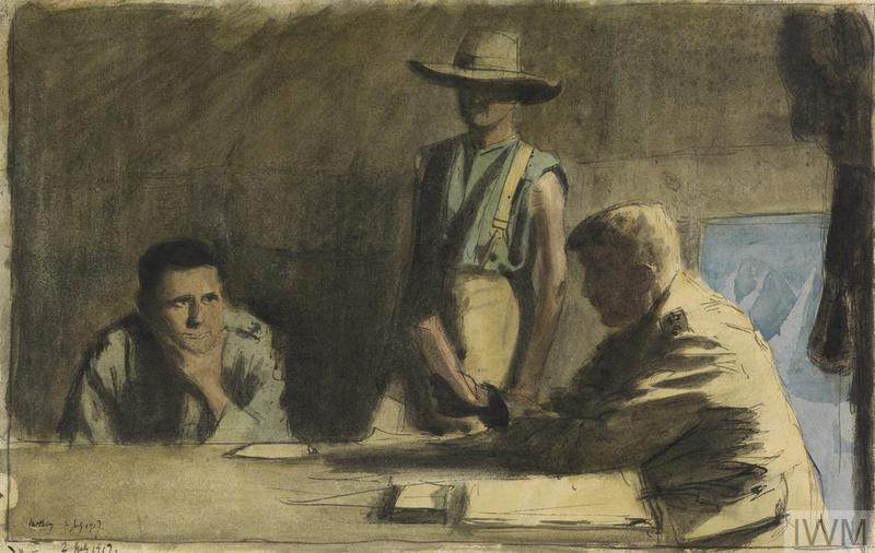 Australians : the orderly hands the officer a telegram from the signal station near, and waits