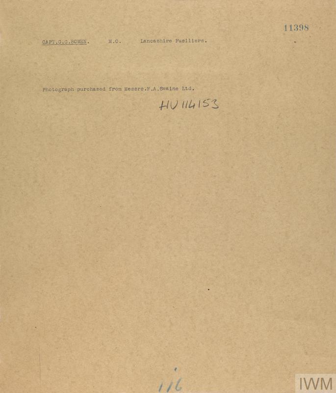 Captain Geoffrey Grenside Bowen MC. Unit: B Company, 2nd Battalion, Lancashire Fusiliers. Death: 02 September 1918 Western Front
