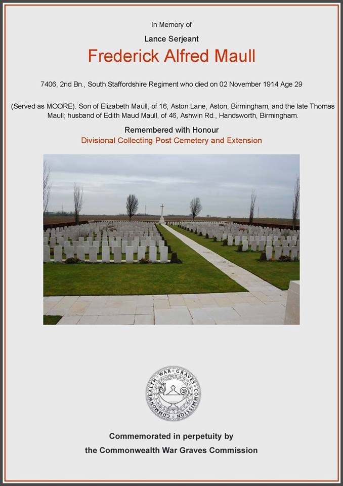 Lance Serjeant Frederick Alfred Maull 7406, South Staffordshire Regiment