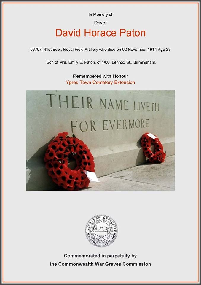 Second Lieutenant James William Brown. Unit: 26th Brigade, Royal Field Artillery. Death: 02 November 1914 Wounded 31 October 1914 Western Front