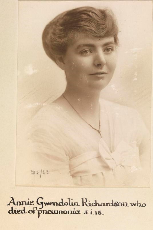 Miss Annie Gwendolin Richardson, Voluntary Aid Detachments. Died of pneumonia 03 January 1918.