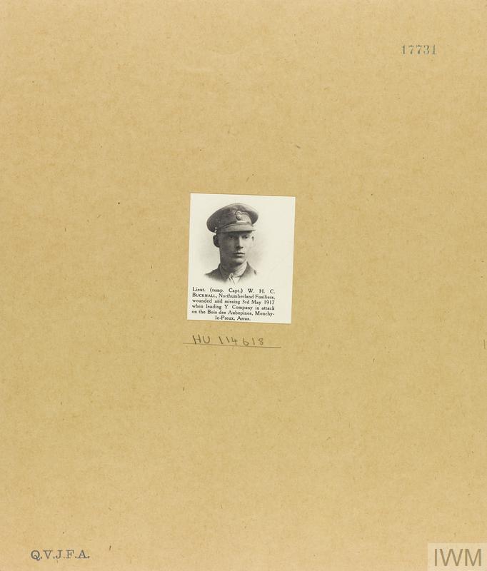 Captain Walter Harry Corfield Bucknall. Unit: 2nd Battalion, attached to 1st Battalion, Northumberland Fusiliers. Death: 03 May 1917 Bois des Aubepines, Monchy-le-Preux, Arras Western Front