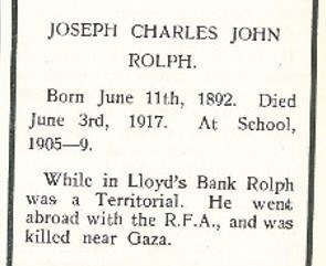 Gunner Joseph Charles John Rolph 880191, Royal Field Artillery