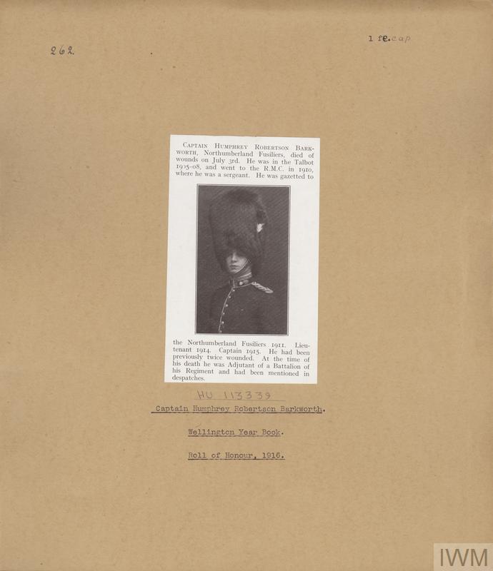 Captain Humphrey Robertson Barkworth. Unit: 2nd Battalion, Northumberland Fusiliers. Death: 3 July 1916, Somme, Western Front.