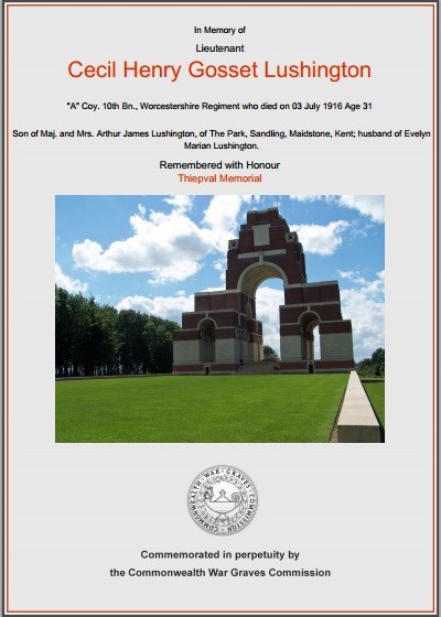 Lieutenant Cecil Henry Gosset Lushington , Worcestershire Regiment