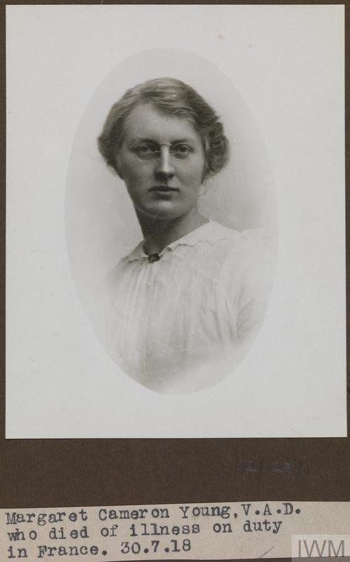 Nurse Margaret Cameron Young, Voluntary Aid Detachments. Died of illness contracted on duty in France 03 July 1918.