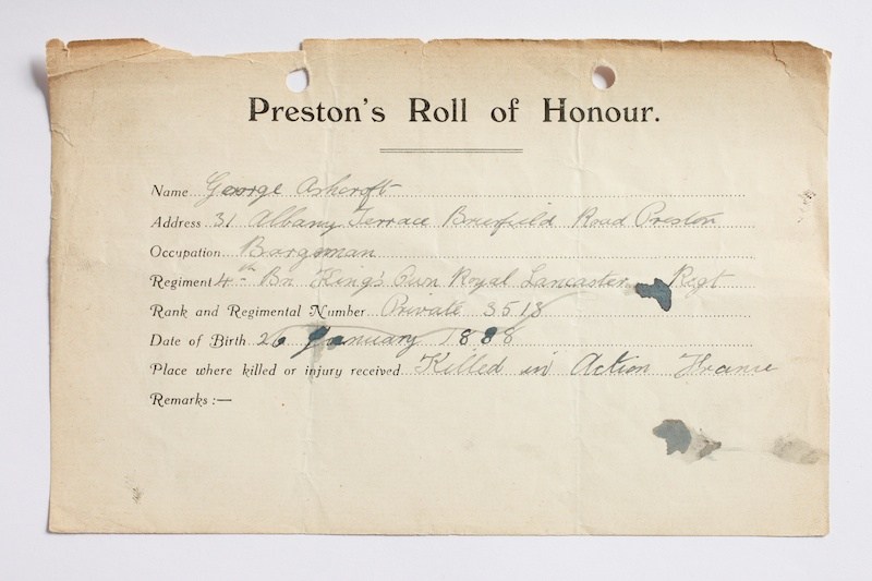 Private George Ashcroft 3513, King's Own (Royal Lancaster Regiment)