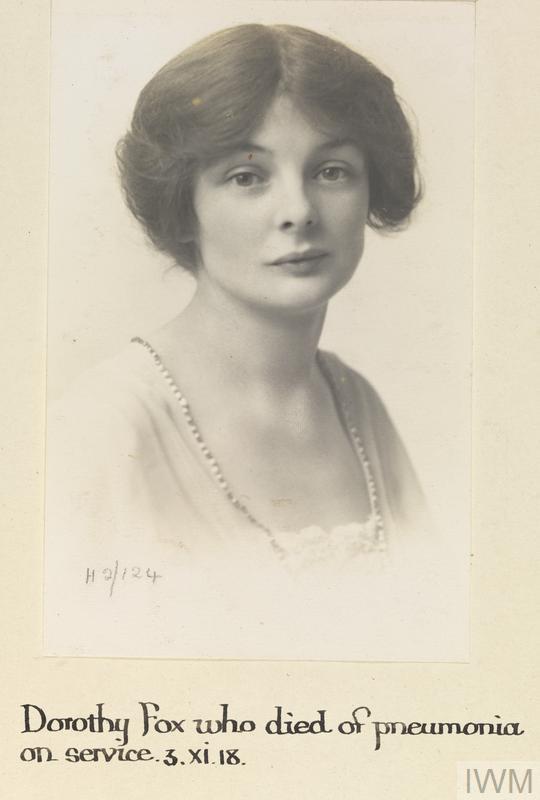 Dorothy Fox, Voluntary Aid Detachments. Died of pneumonia contracted on duty 03 November 1918.