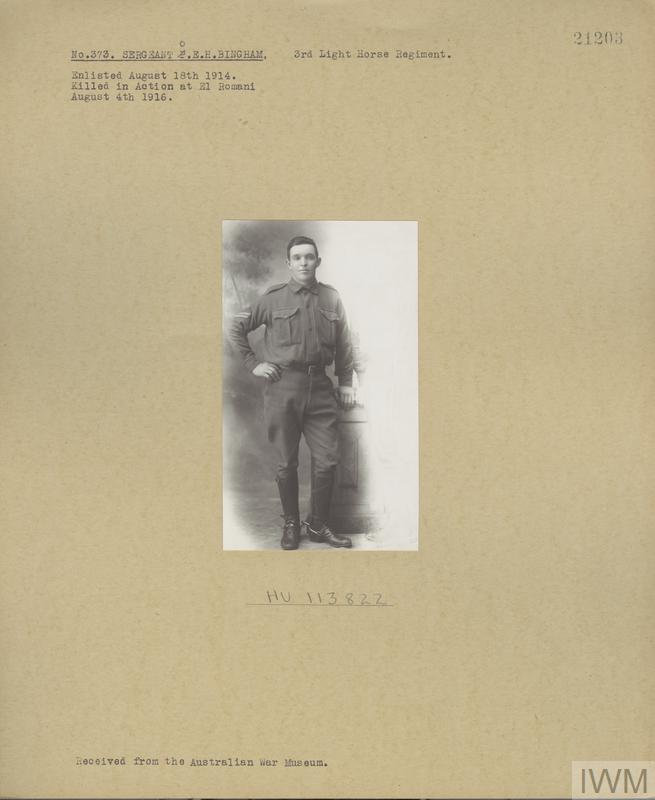 Sergeant Owen Ernest Hugh Bingham 373. Unit: 3rd Light Horse Regiment, Australian Imperial Force. Death: 4 August 1916, El Romani, Egypt.