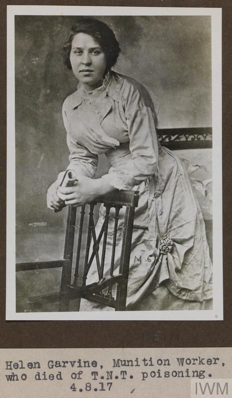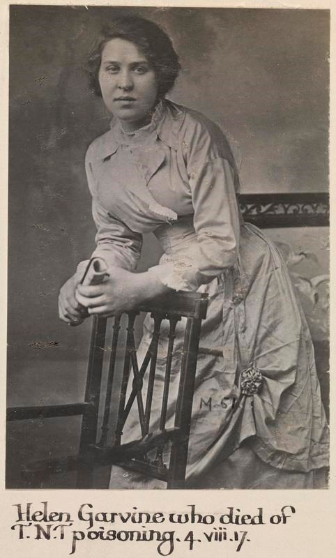 Helen Garvine, Munitions work. Died of TNT poisoning 04 August 1917.