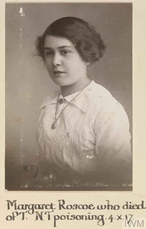 Margaret Roscoe, Munitions work. Died of TNT poisoning 04 October 1917.