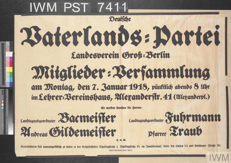 Deutsche Vaterlandspartei - Mitglieder-Versammlung [German Fatherland Party – Members’ Meeting]