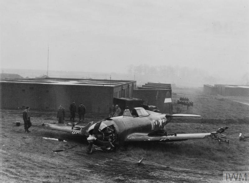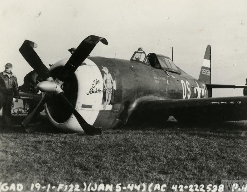 10/24/1944 landing in P-47D #42-74654. He had to be dug out of a defense trench but was uninjured.
