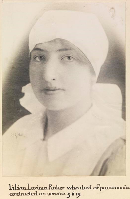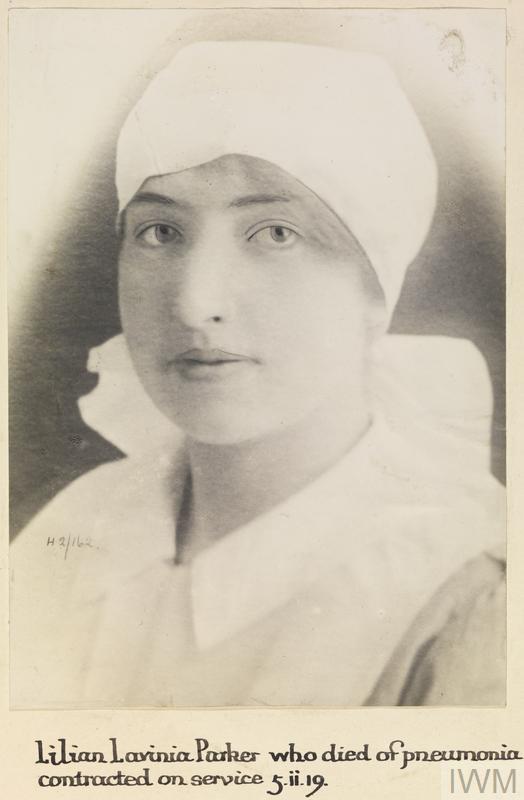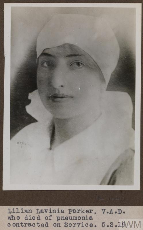 Lilian Lavinia Parker, Voluntary Aid Detachments. Died of pneumonia contracted on duty 05 February 1919.