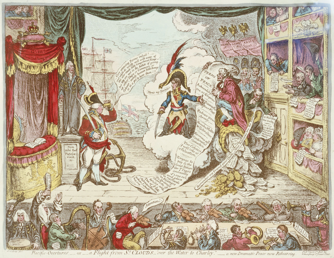 Pacific Overtures - or - a Flight from St Cloud's - over the Water to Charley - a new Dramatic Peace now Rehearsing (caricature). Hand-coloured.