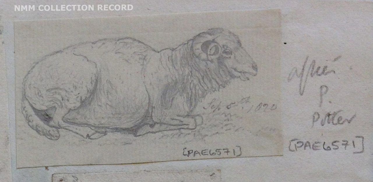 Study of a recumbent sheep after Paul Potter. Mounted with PAE6569-PAE6570.