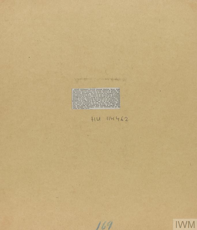 Second Lieutenant Wilfred Eustace Brufton. Unit: 119th Battery, 27th Brigade, Royal Field Artillery. Death: 05 September 1915 Western Front