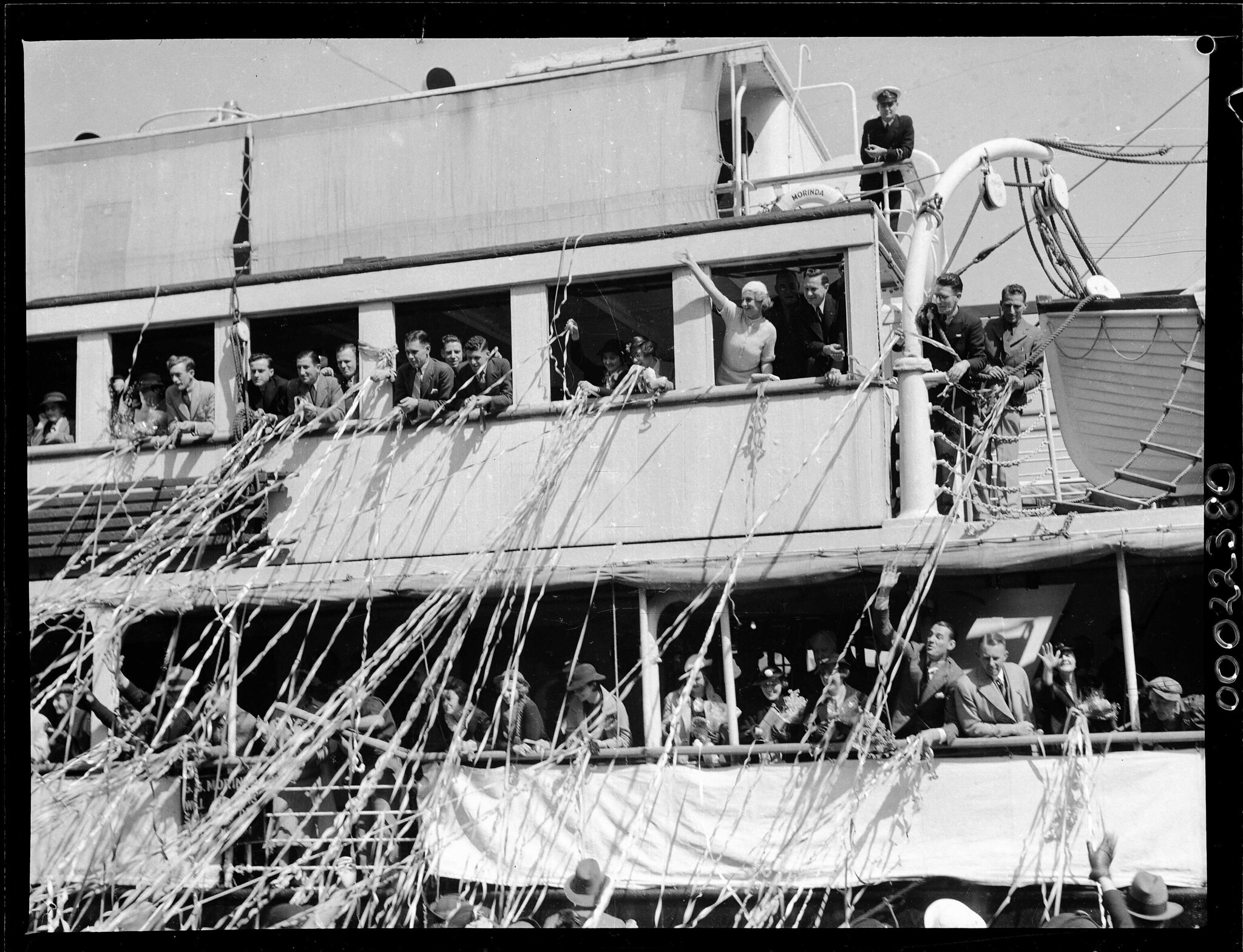 The cast and crew of Australian film 'Mystery Island' on board SS MORINDA at no. 10 wharf Walsh Bay