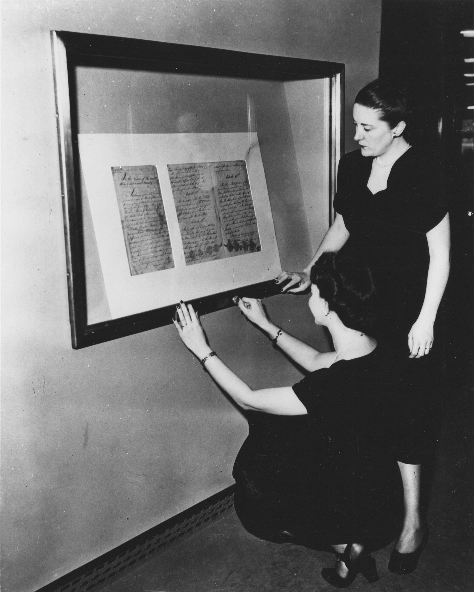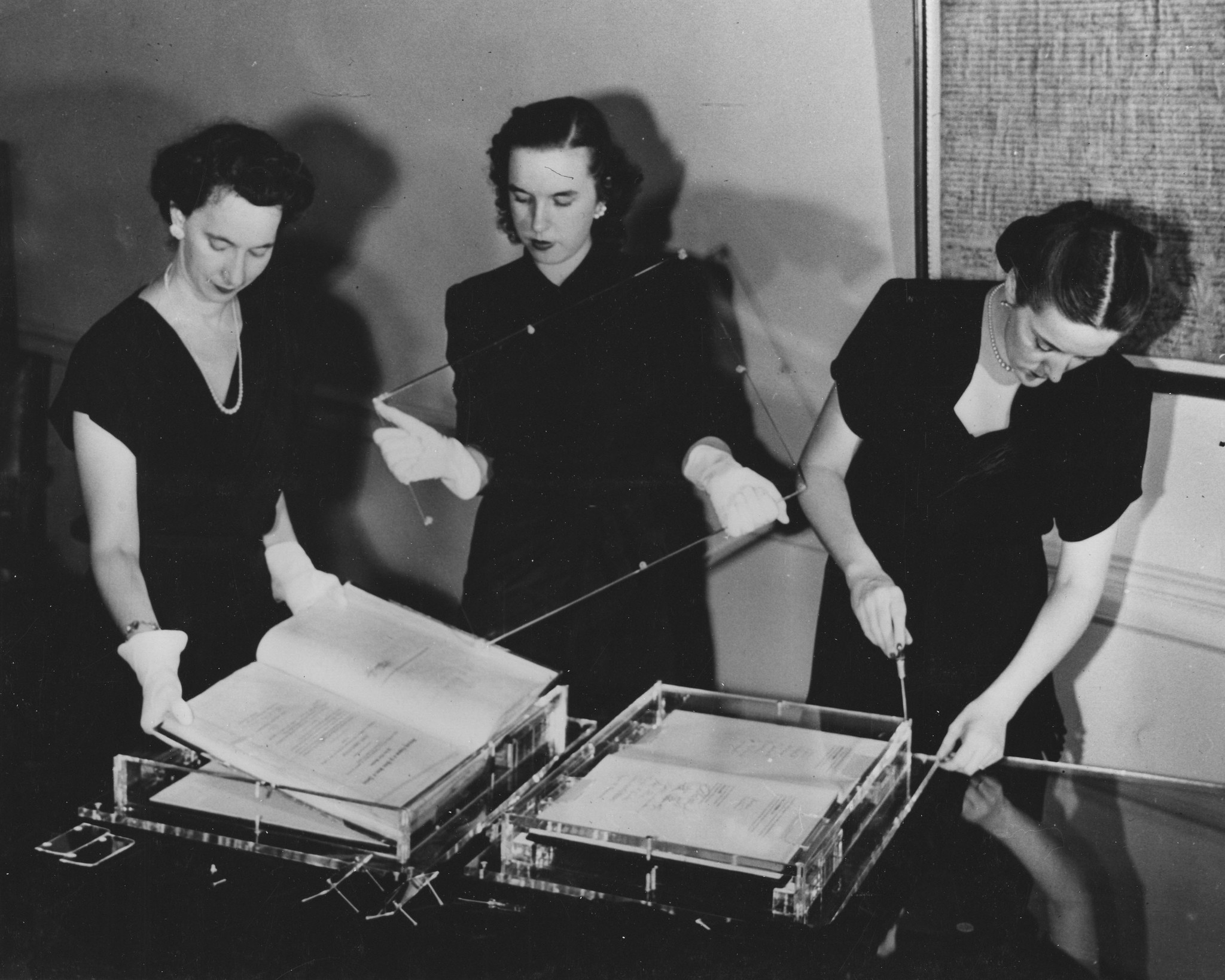 Photograph of National Archives Personnel Working on Installation of Documents on the Freedom Train