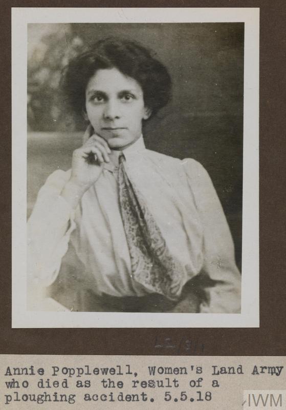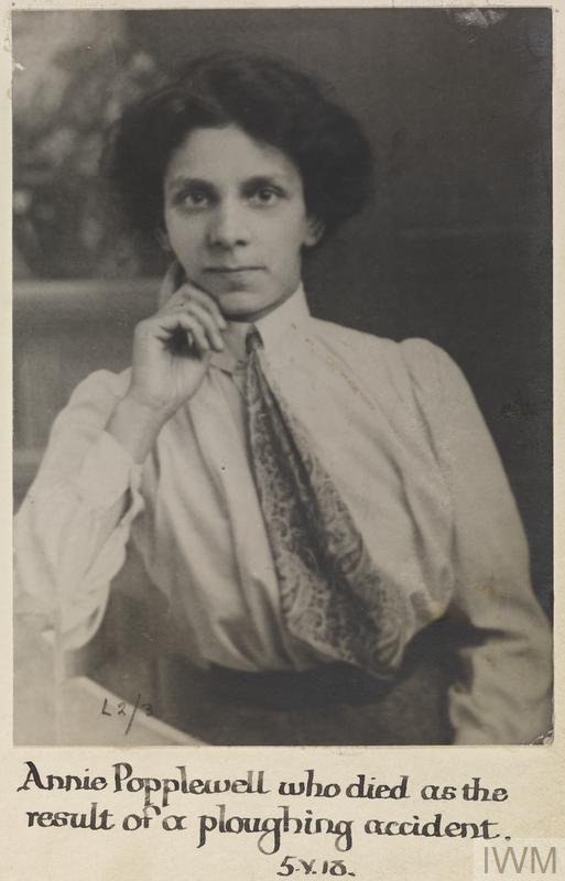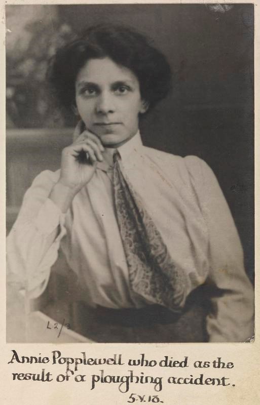 Miss Annie Popplewell, Women's Land Army. Died as the result of a ploughing accident 05 October 1918.