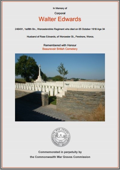 Corporal Walter Edwards 240491, Worcestershire Regiment