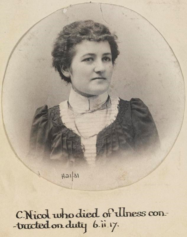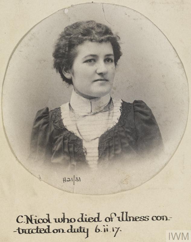 C Nicol, Queen Alexandra's Imperial Military Nursing Service Reserve. Died of illness contracted on duty 06 February 1917.