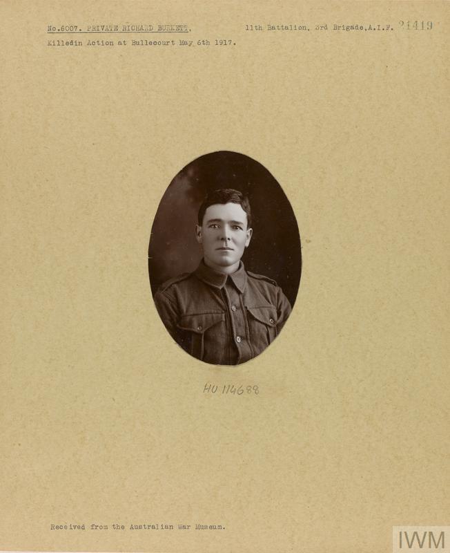 Private Richard Burkett 6007. Unit: 11th Battalion, 3rd Brigade, Australian Imperial Force. Death: 06 May 1917 Bullecourt Western Front