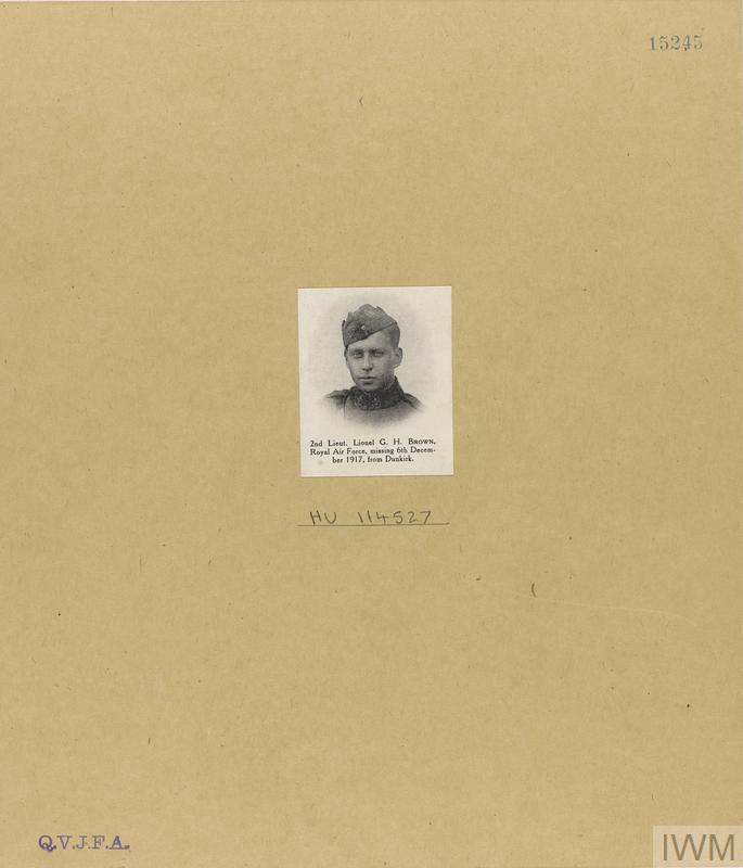 Second Lieutenant Lionel George Henry Brown. Unit: 52nd Squadron, Royal Flying Corps and General List. Death: 06 December 1917 Missing Dunkirk Western Front