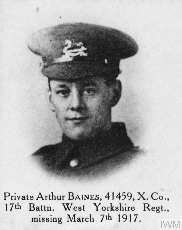 Private Arthur Baines 41459. Unit: X Company, 17th Battalion, West Yorkshire Regiment. Death: 07 March 1917