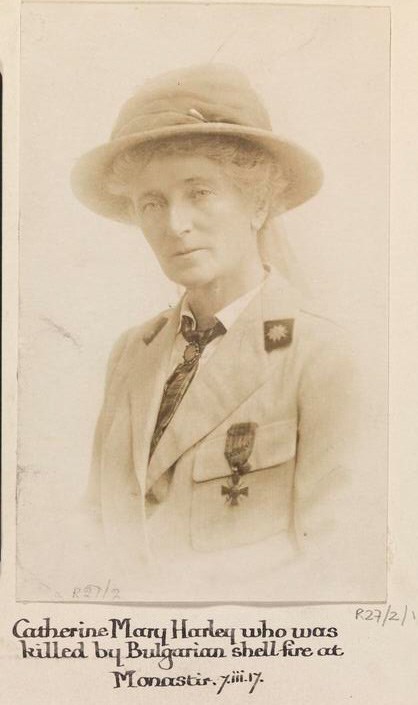 Mrs Catherine Mary Harley, Serbian Relief Fund. Killed by Bulgarian shellfire at Monastir 07 March 1917.