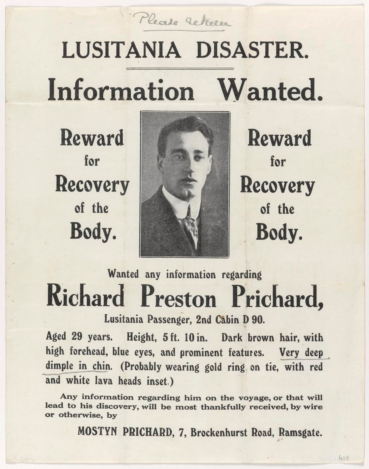 Stewardess Annie Richardson , Mercantile Marine - S.S. "Lusitania" (Liverpool)