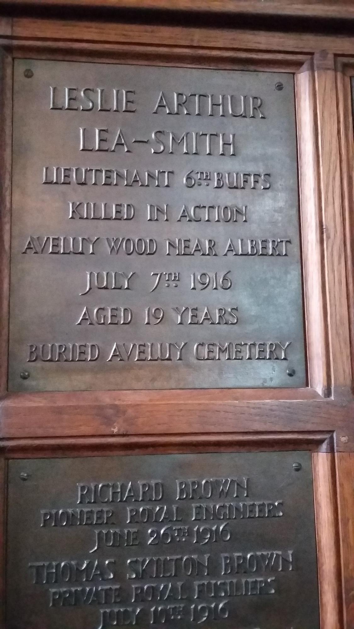 Lieutenant Leslie Arthur Lea-Smith , The Buffs (East Kent Regiment)