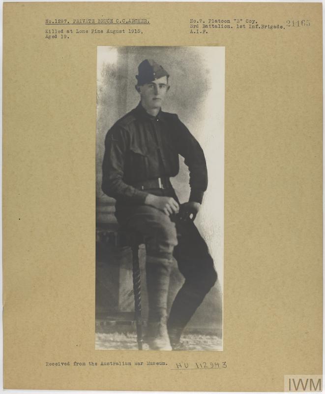 Private Bruce Charles C Archer 1297. Unit: No 7th Platoon, B Company, 3rd Battalion, 1st Infantry Brigade, Australian Imperial Force. Death: Between 07/08/1915 and 12/08/1915 Lone Pine Dardanelles