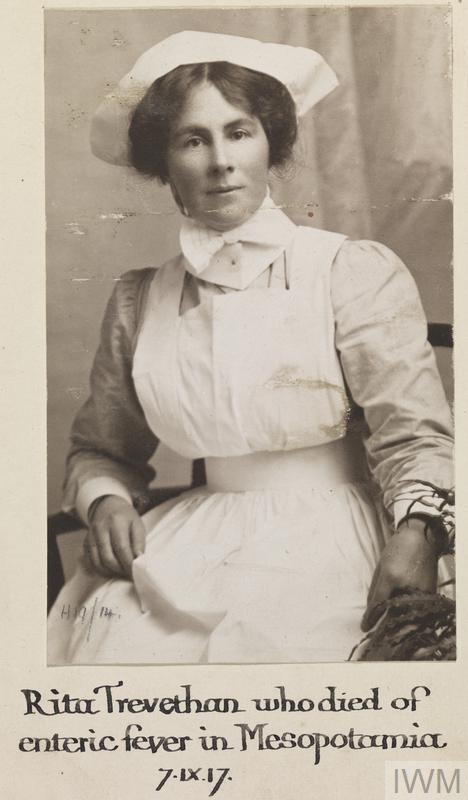 Rita Trevethan, Territorial Force Nursing Service. Died of enteric fever in Mesopotamia 07 September 1917.