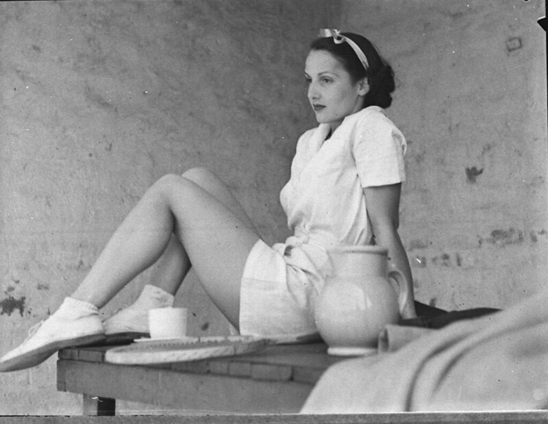 Actress Billy Worth dressed for tennis, 6/10/1937, Sydney, NSW., Sam Hood
