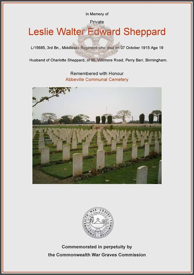 Private Leslie Walter Edward Sheppard L/15685, Middlesex Regiment